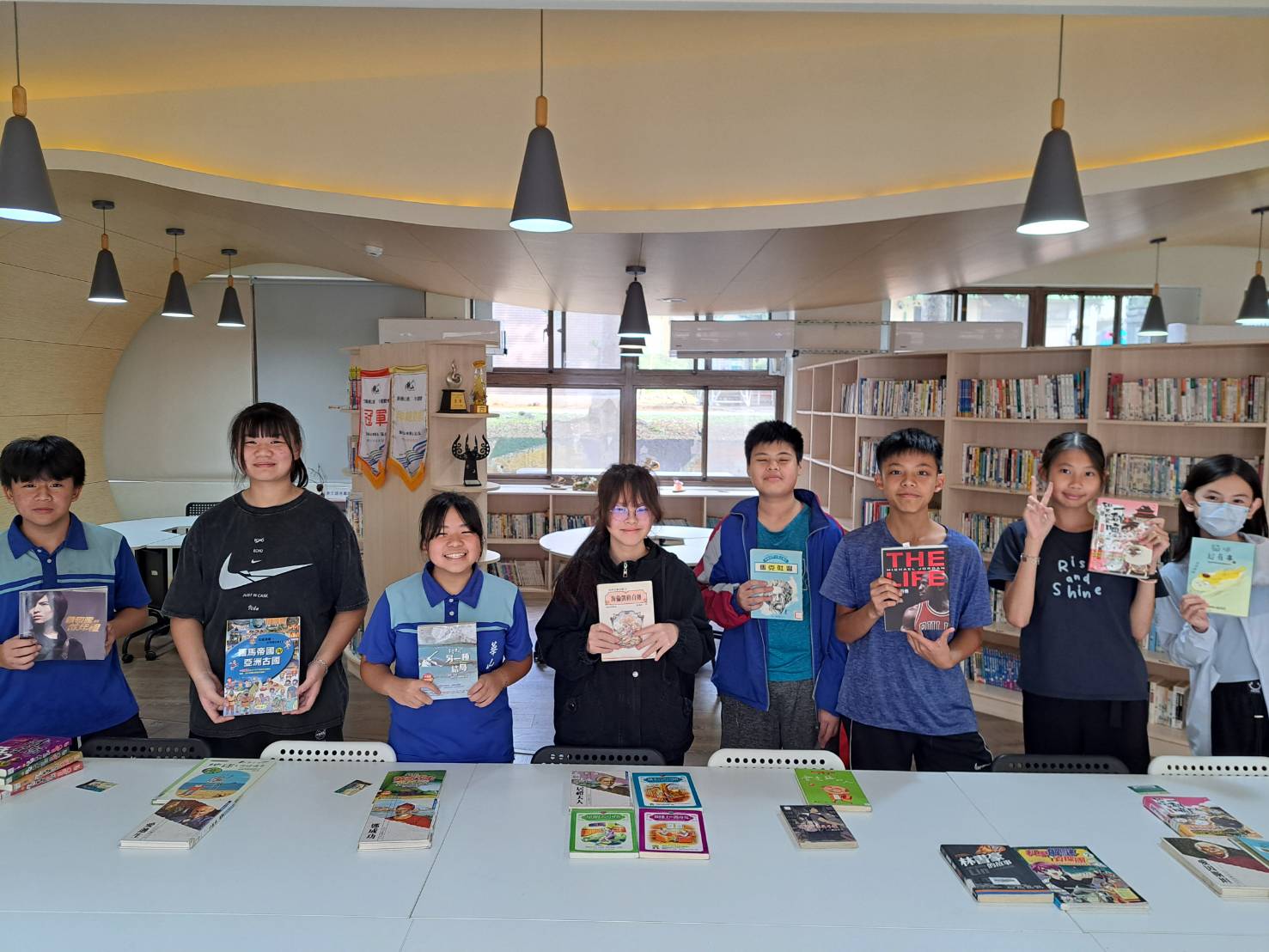 華山國中-位在新竹縣橫山鄉的迷你學校,連續兩年榮獲教育部閱讀磐石學校及教育部閱讀推手獎。學校不僅擁有自然環境的美,更是一所充滿人性關懷的溫馨校園。以地區自然生態特色物種蝙蝠結合四季為主題,設計全校性跨領域閱讀課程;教師們自創洋蔥教學法 (讀懂)、火鍋教學法 (讀通)及千層派教學法 (讀活),結合數位閱讀、R-STEAM課程及多元文本閱讀,引領學生進行人物閱讀專題報告。學校還將舊圖書館改造成蝙蝠造型書窩,將閒置教室結合班級閱讀角,讓師生處處能閱讀、時時能學習! 在享受閱讀樂趣的同時,更創造出許多動人、心中有愛的閱讀故事。