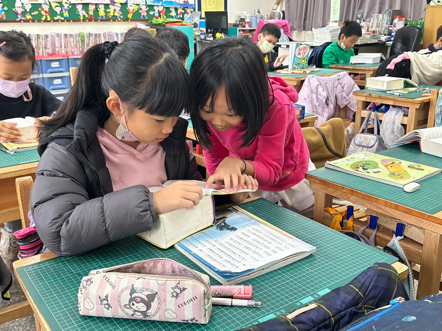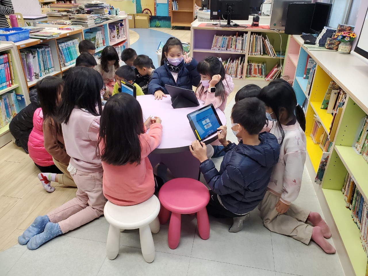 校園各角落設有閱讀角與漂書站,書本隨手可得;主題書展與閱讀牆定期更新,讓閱讀與生活緊密結合。學校並推動親師生共讀活動,以閱讀冊與打卡牆串連家庭閱讀,營造書香延伸的社群力量。