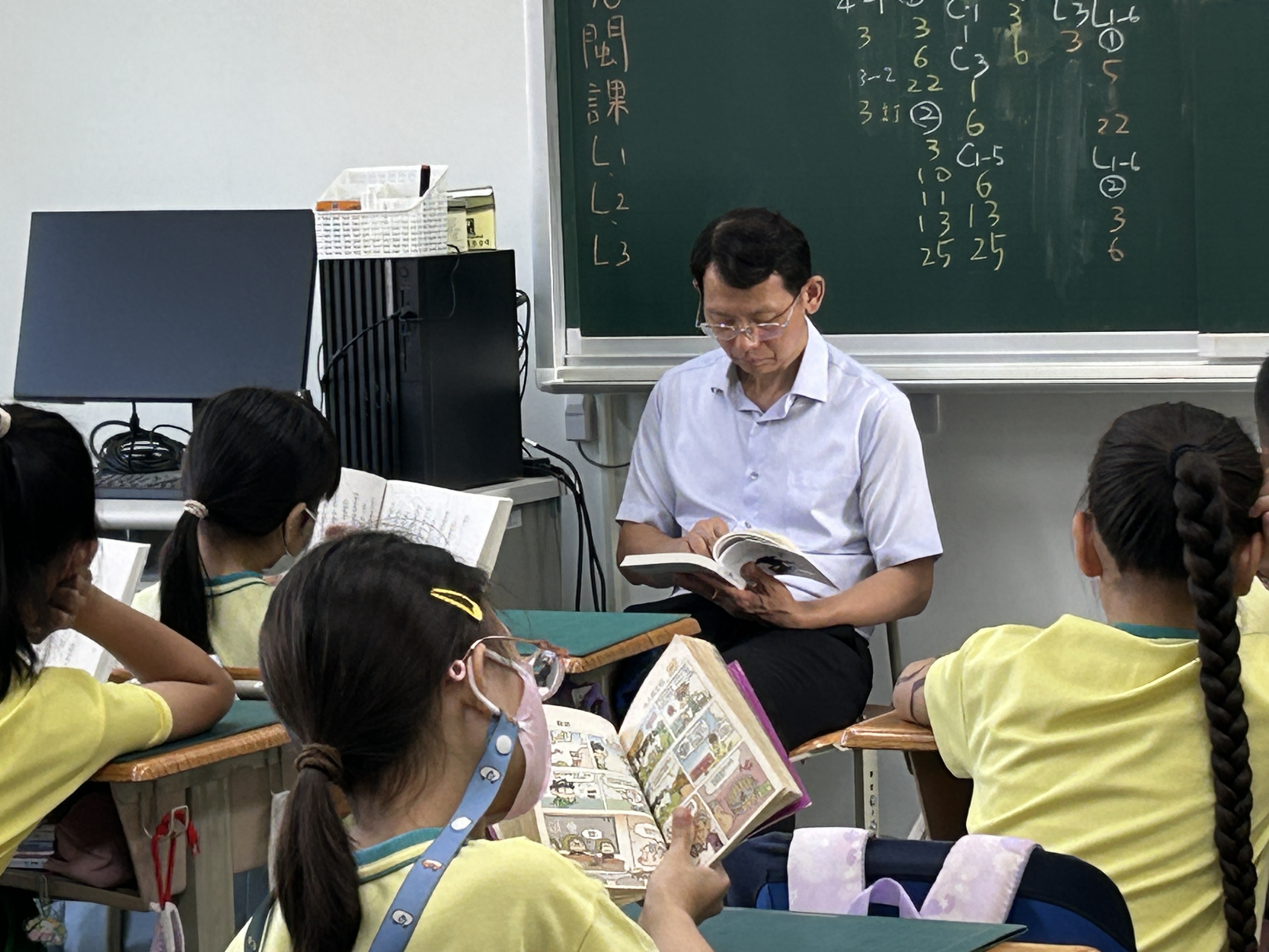 2. 校長每日輪流至各班陪讀,級任老師陪同各班學生於班上閱讀,其餘師長於校園各區閱讀。