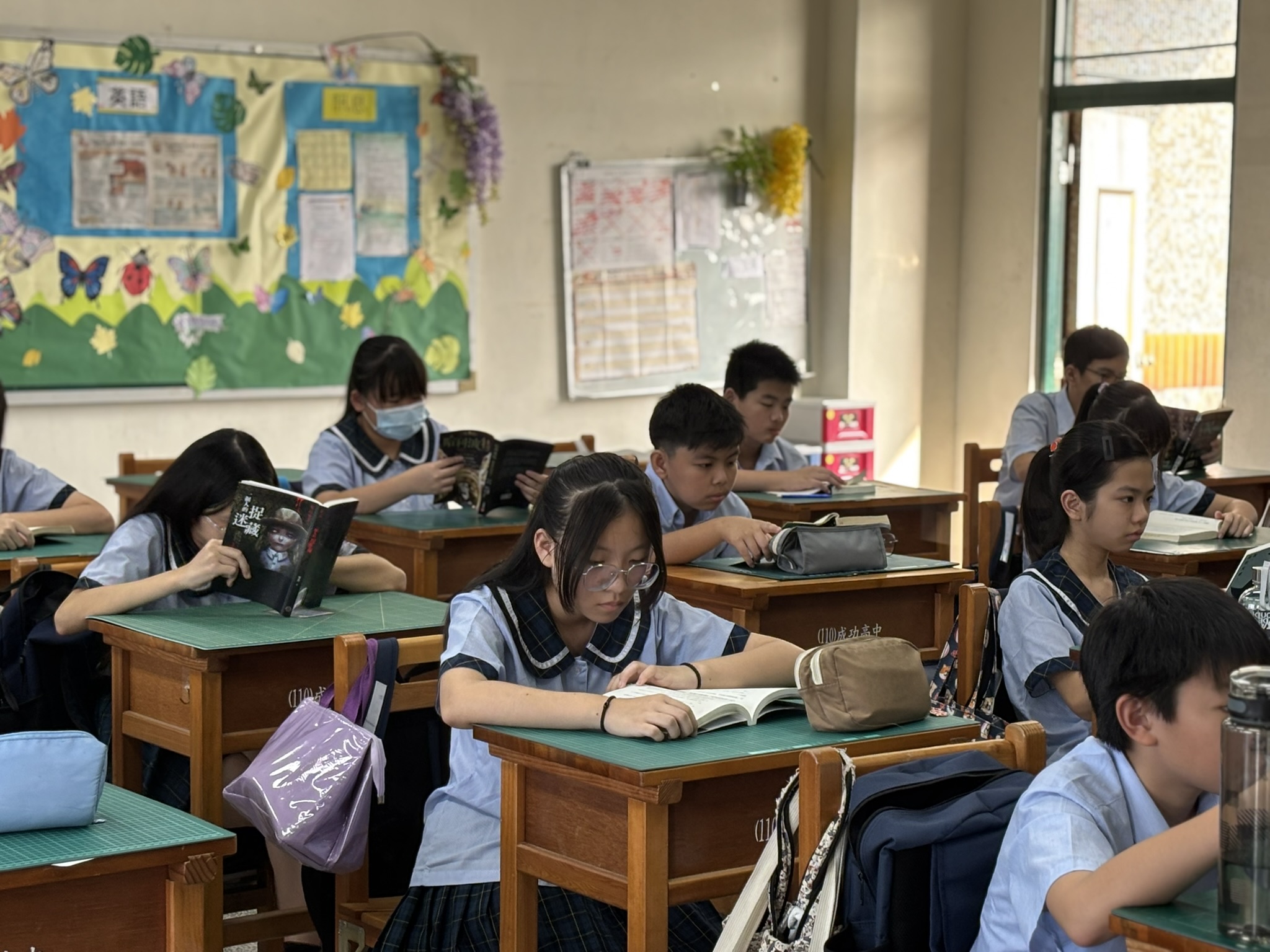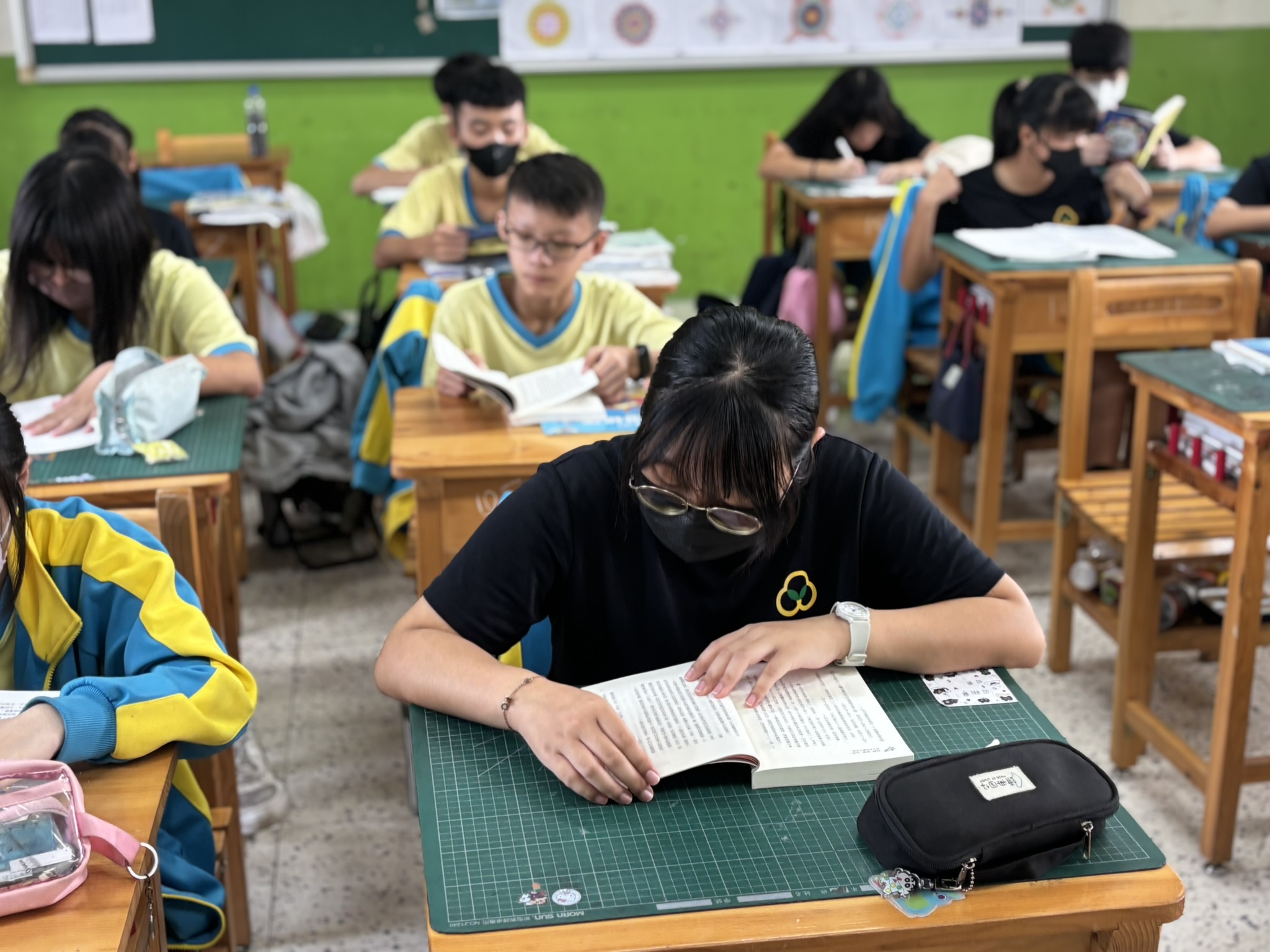 導師身教式持續安靜閱讀 (MSSR)的陪伴下,運用教育部新生贈書,法鼓山基金會贈書、彰化縣讀報教育之好報進行晨讀,學生養成了靜心、靜讀、靜學的習慣,再以家長會印製之「成功閱讀護照」,讓學子將吸收之內容,轉化成文字表達出來。
