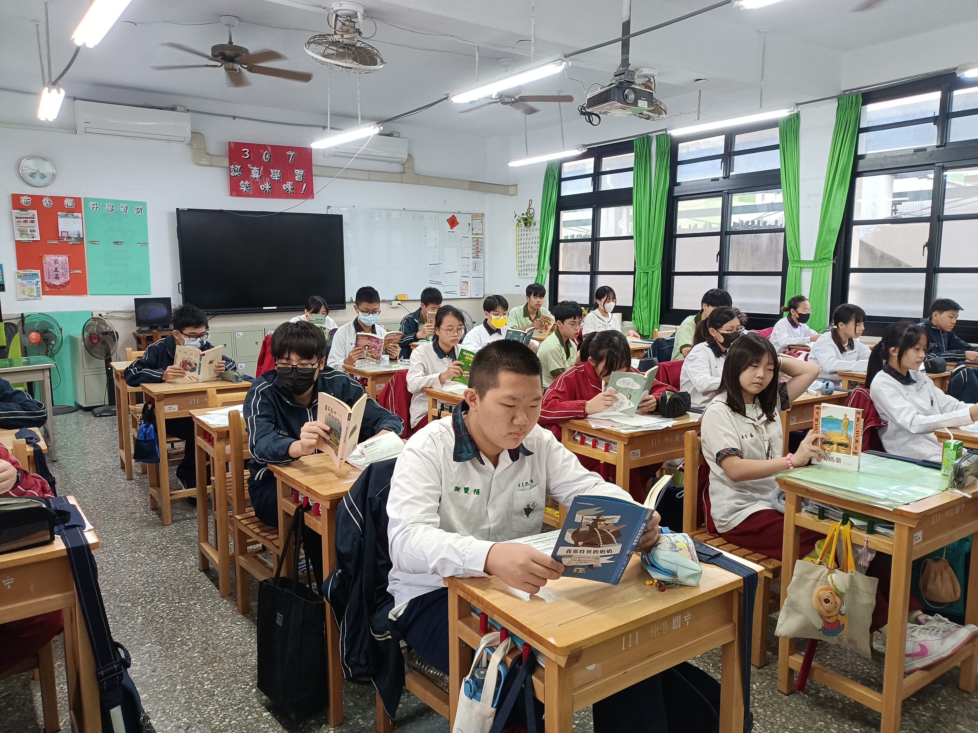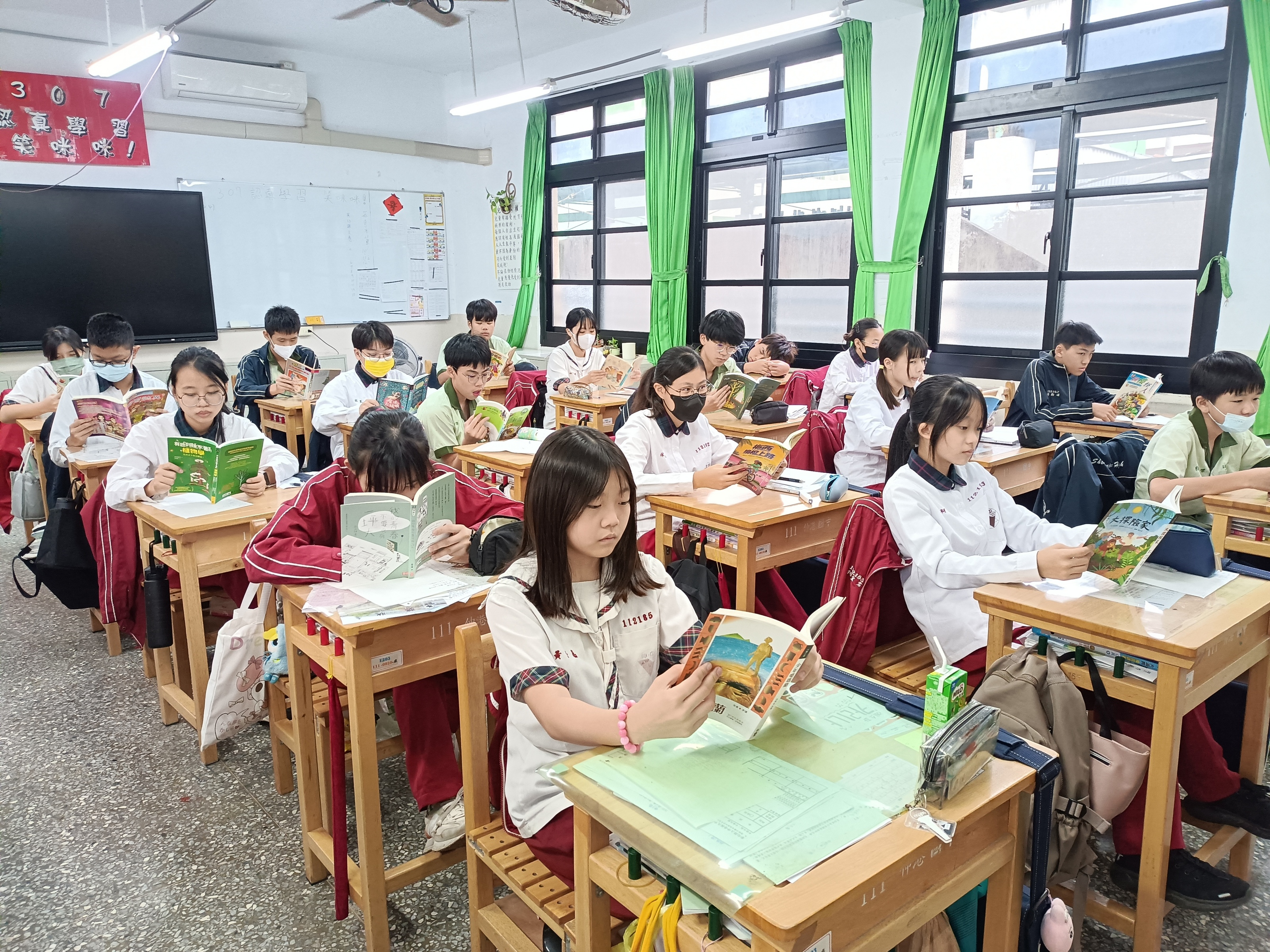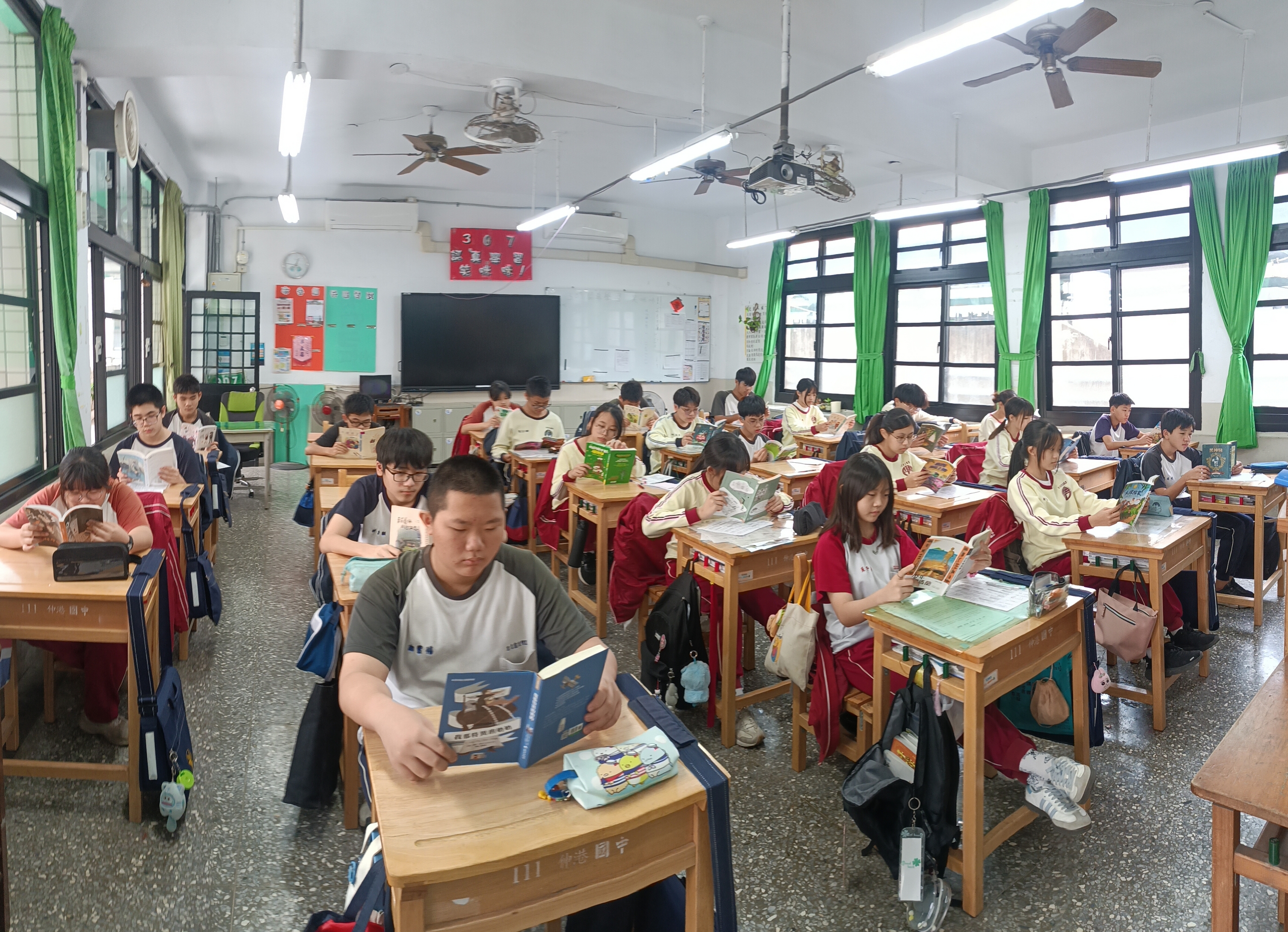伸港國中經年推廣學生閱讀書氣,早上也排有晨讀的時間;社區共讀站也提供多元的班書或是10本一組的好書,以利全班閱讀討論或依程度喜好分組研讀討論。