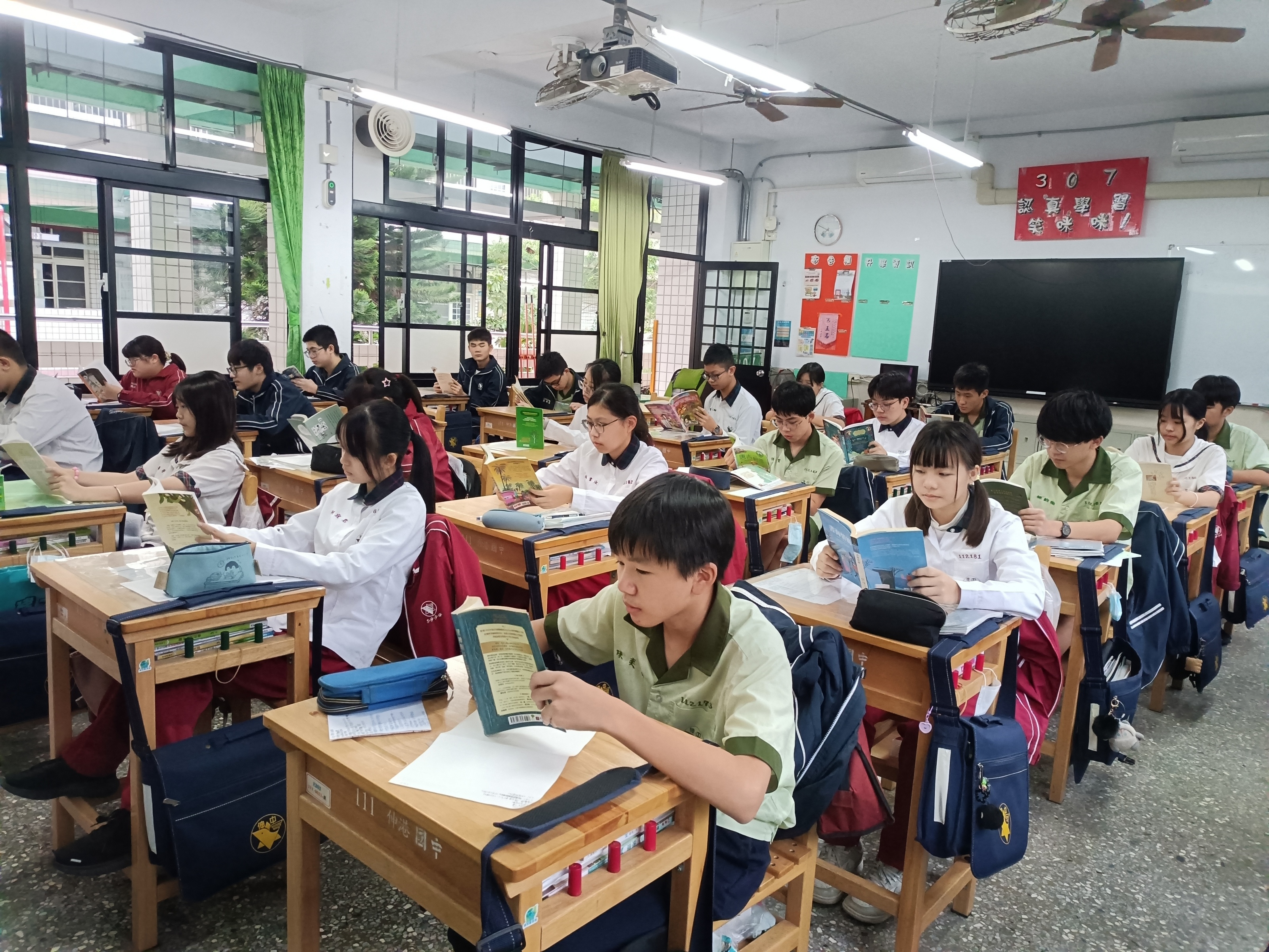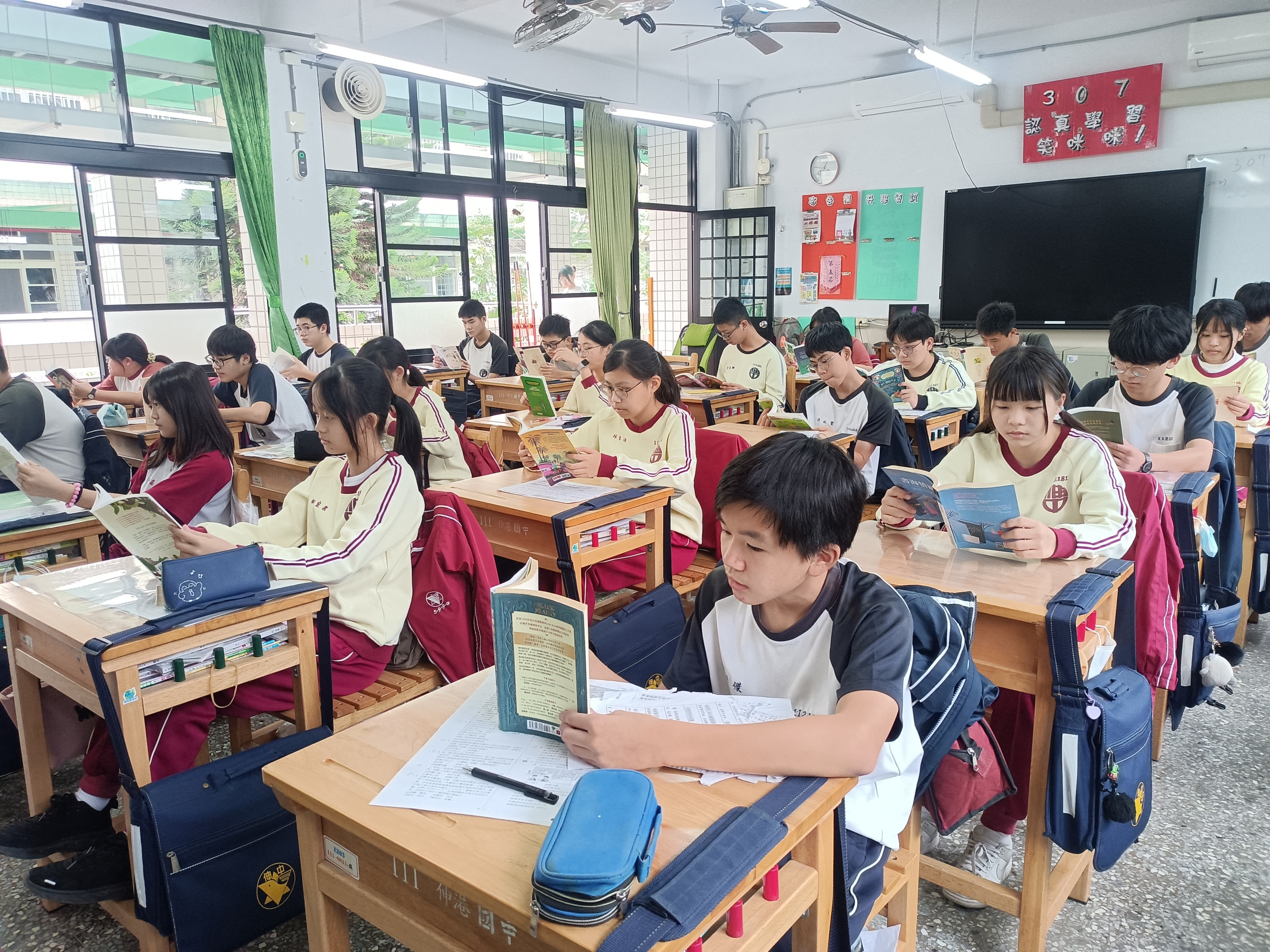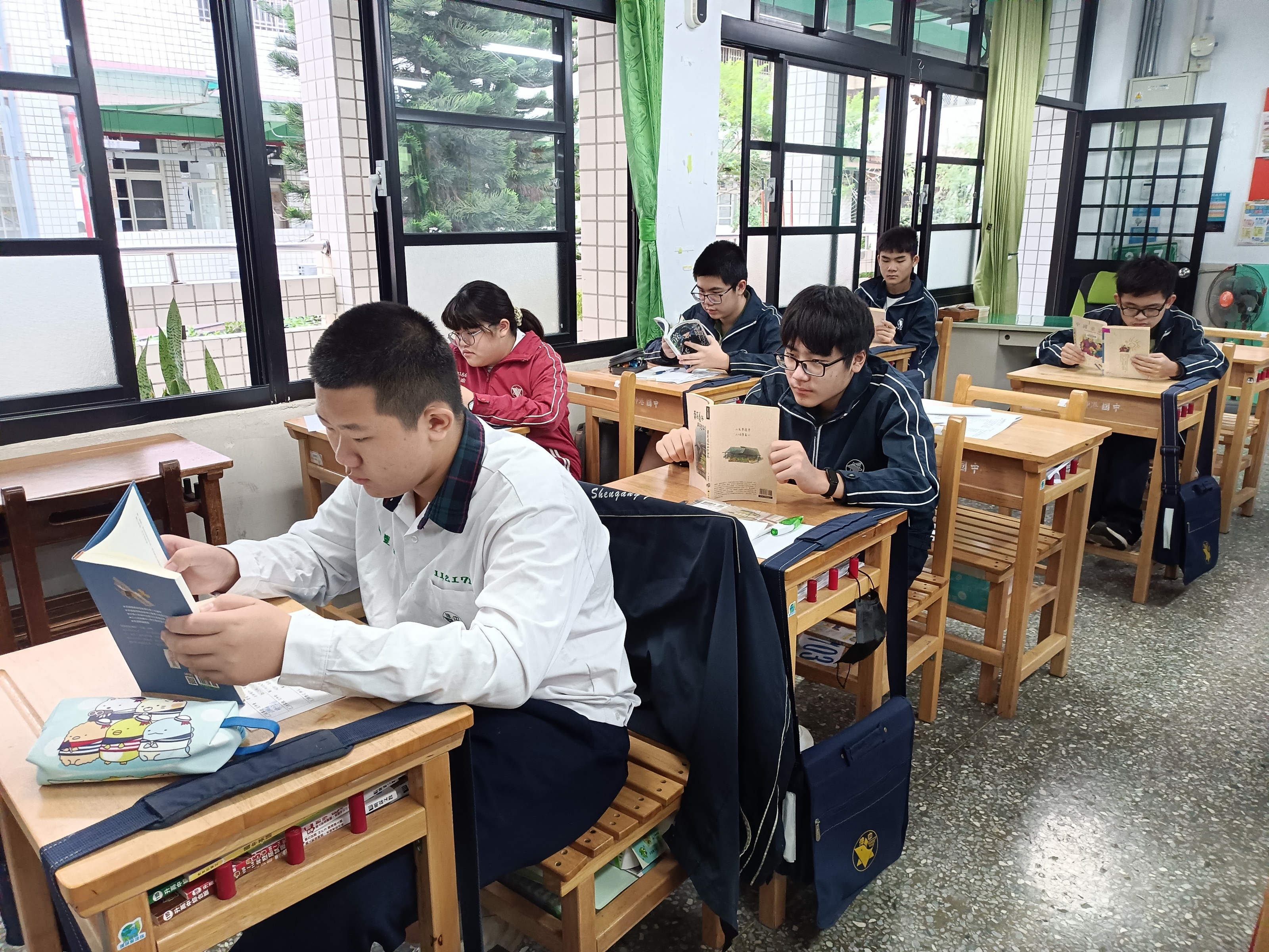 利用早早修的時間進行朗讀佳作美文,有唐詩宋詞元曲;有古今文人的散文,讓學生不自覺中能朗朗上口進而背誦;平日固定時間研讀班書,並且書寫閱讀護照,分組或全班性讀書會討論,若議題不難,會先使用聯絡薄的生活札記處寫心得,於課中分享。