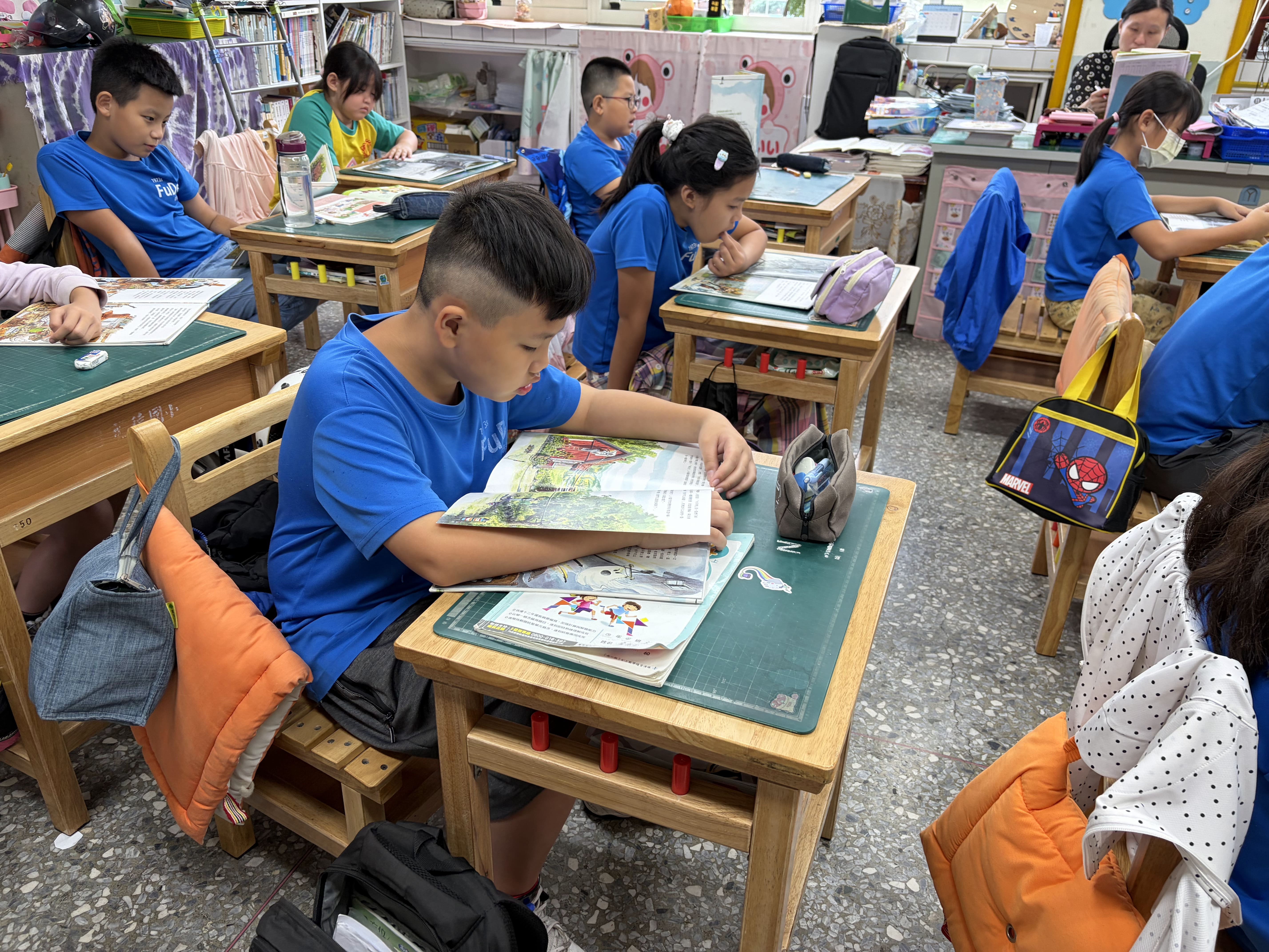 行政同仁帶動,級任教師也自動自發提早到校,陪孩子們晨讀。