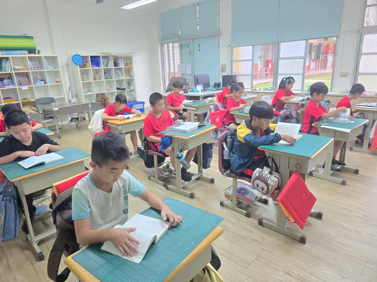 學校訂定每週四的晨光時間規畫為全校 MSSR(身教式持續安靜閱讀)時間,讓師生一同沉浸於書香之中。另方面,全校運用「愛的書庫」書箱推動各班共讀,敝校連年獲得圖書經費補助,持續引進各類新書。近年來英語讀物亦逐步增加,為師生提供更豐富、多元的閱讀文本。