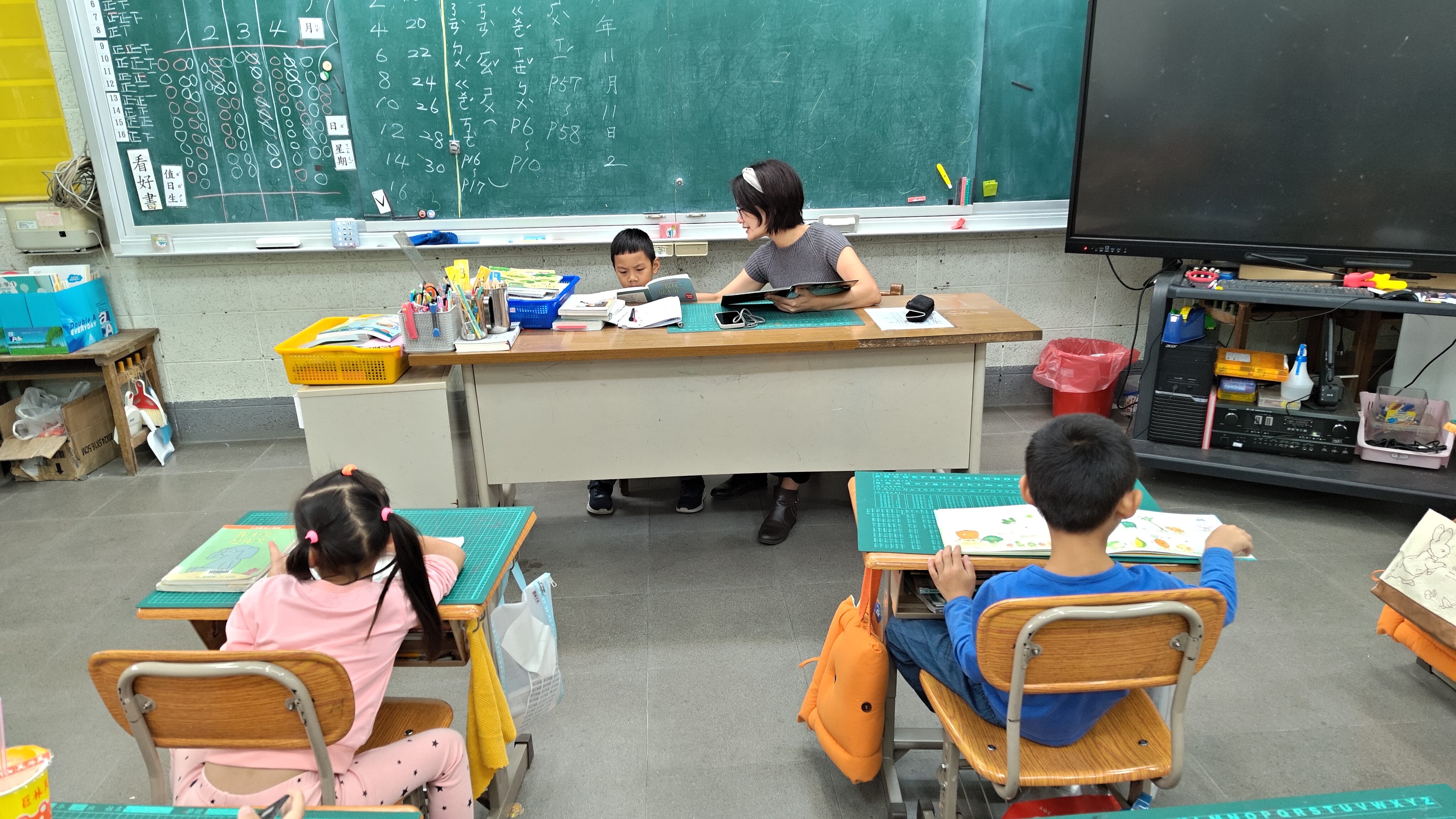 讓需要扶助的小朋友坐在老師旁邊輕聲閱讀;