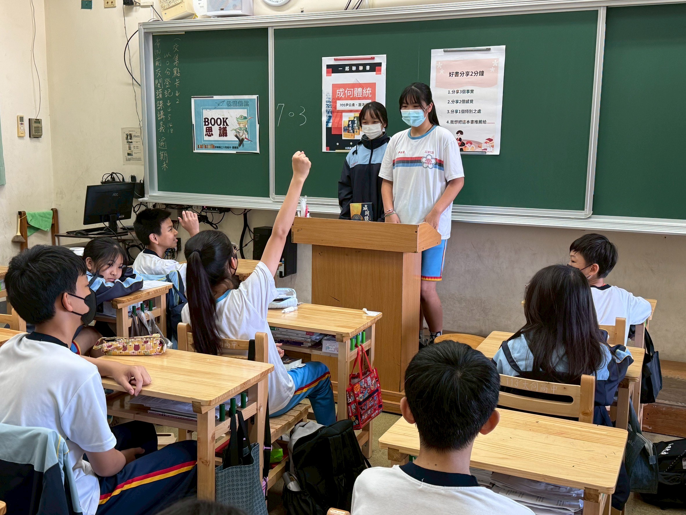 晨讀不只是靜態閱讀,更延伸為「對話式閱讀」與「分享式學習」。導師、校長及行政人員共同入班聊書,形成全校共學共讀的文化。不同角色共同參與,讓閱讀成為連結師生、共創知識的橋樑。
