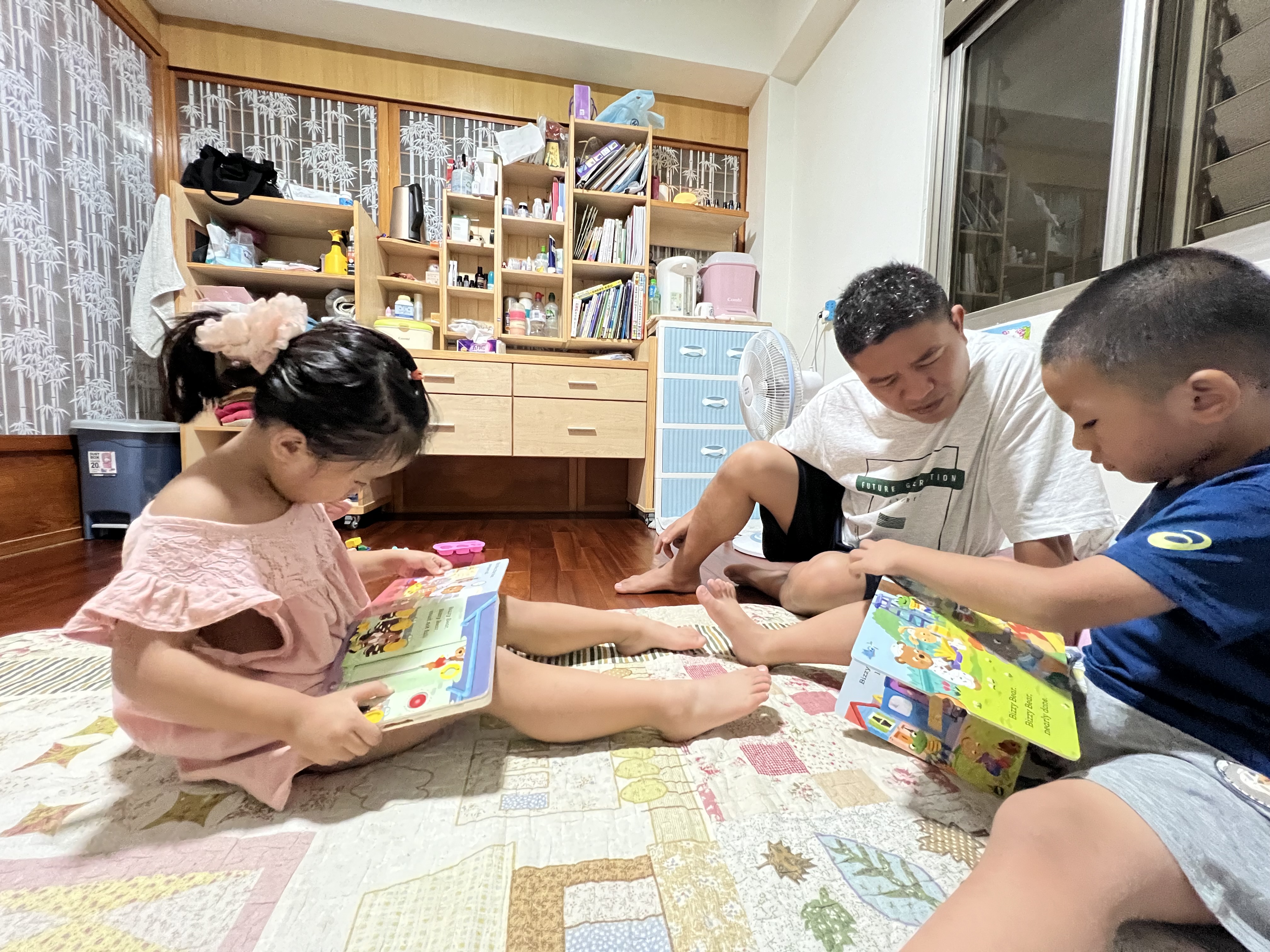 家長在家中進行親子共讀。